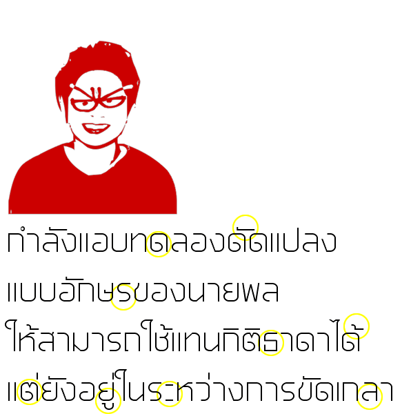 ทีนี้ติดอยู่ที่ว่า ฟ๐นต์นี้ผมทำขึ้นมาโดยไม่ได้ขึ้นรูปเอง แต่เป็นการแก้ไขจากรูปอักษรที่เขามีมาดีๆ อยู่แล้ว